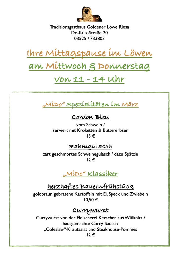 Wir verwöhnen Sie klassisch beim abendlichen Dinner, mittags zum herzhaften Lunch oder auf Ihrer Veranstaltung im Goldenen Löwen Riesa. Unsere Pensionsgäste senden wir mit einem reichhaltigen Frühstück gestärkt in den Tag.