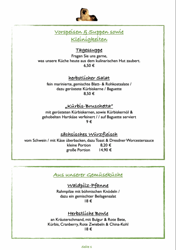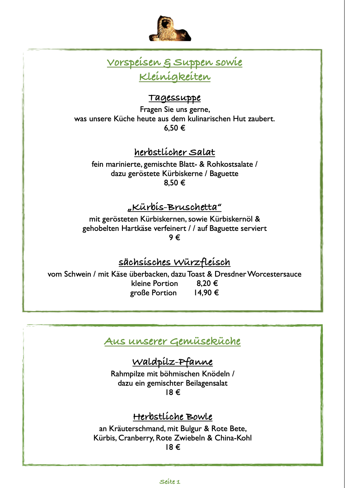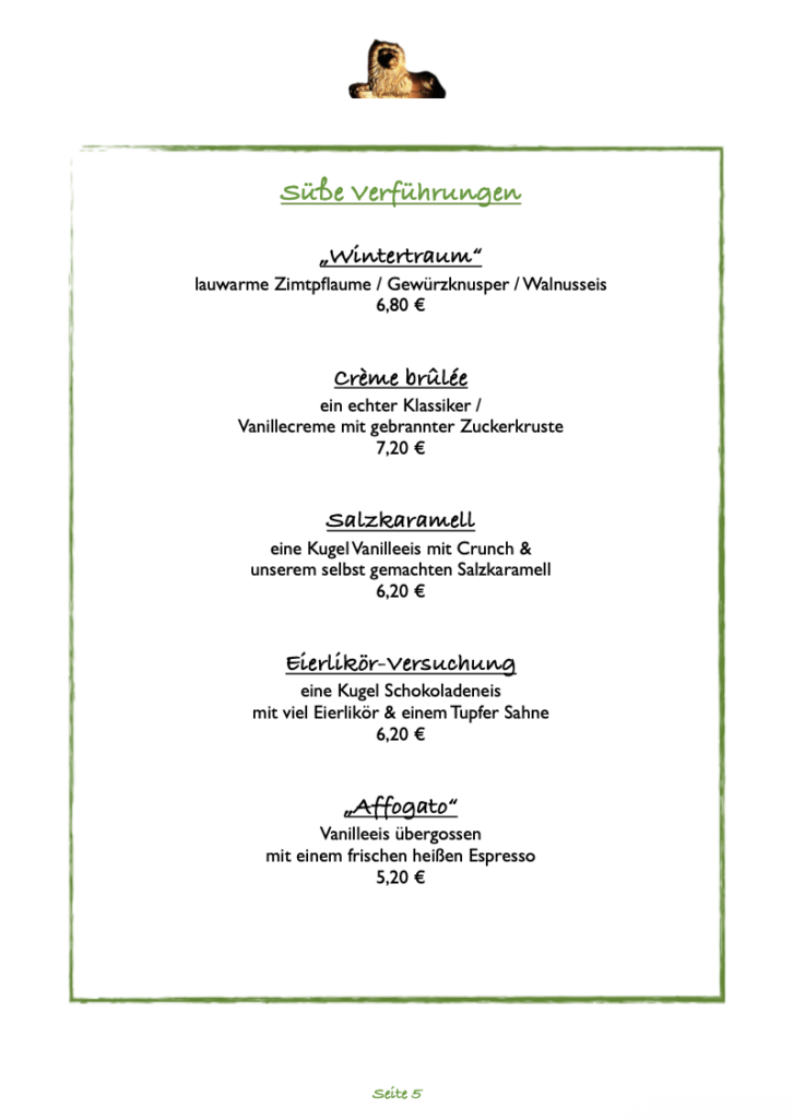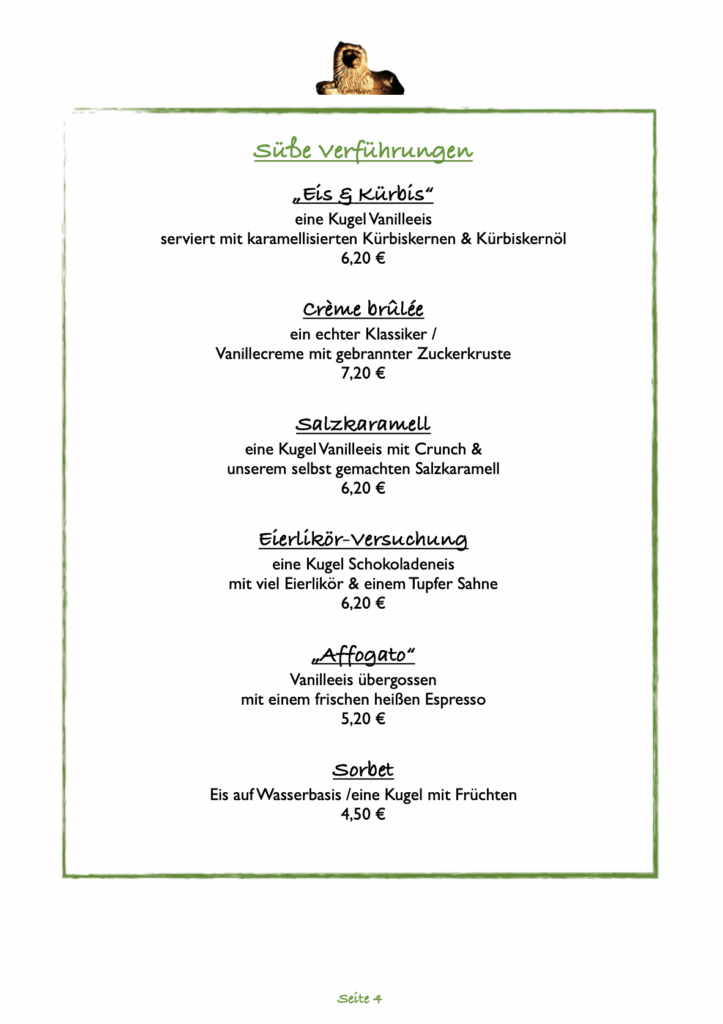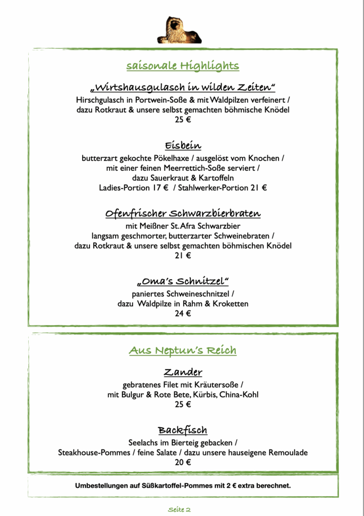 Essen nach Karte (die aktuelle Speisekarte finden Sie immer aktuell auf unserer Webseite)