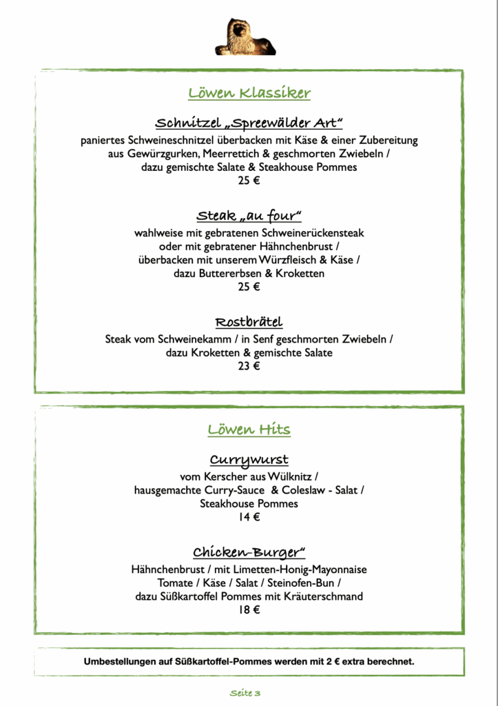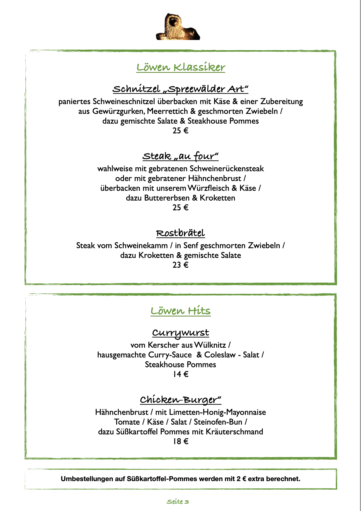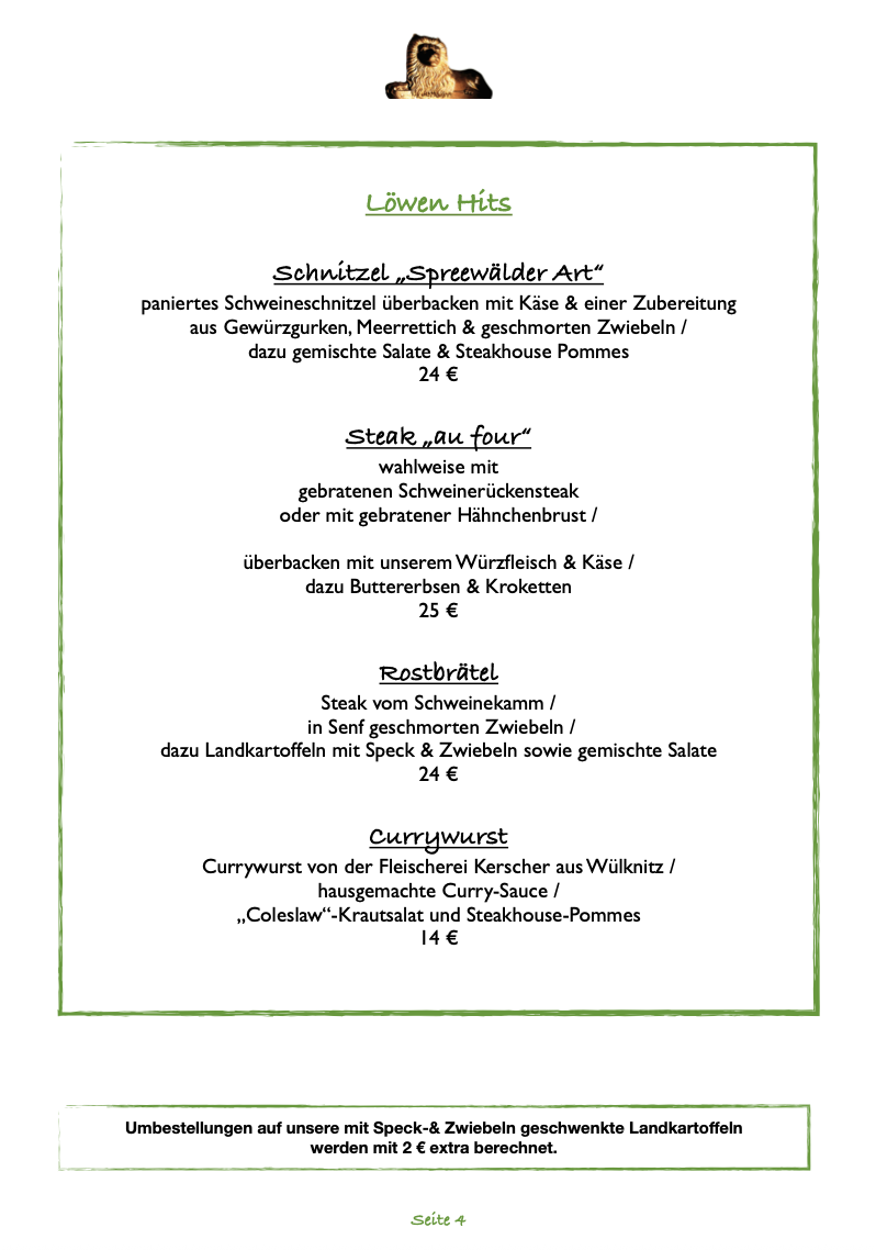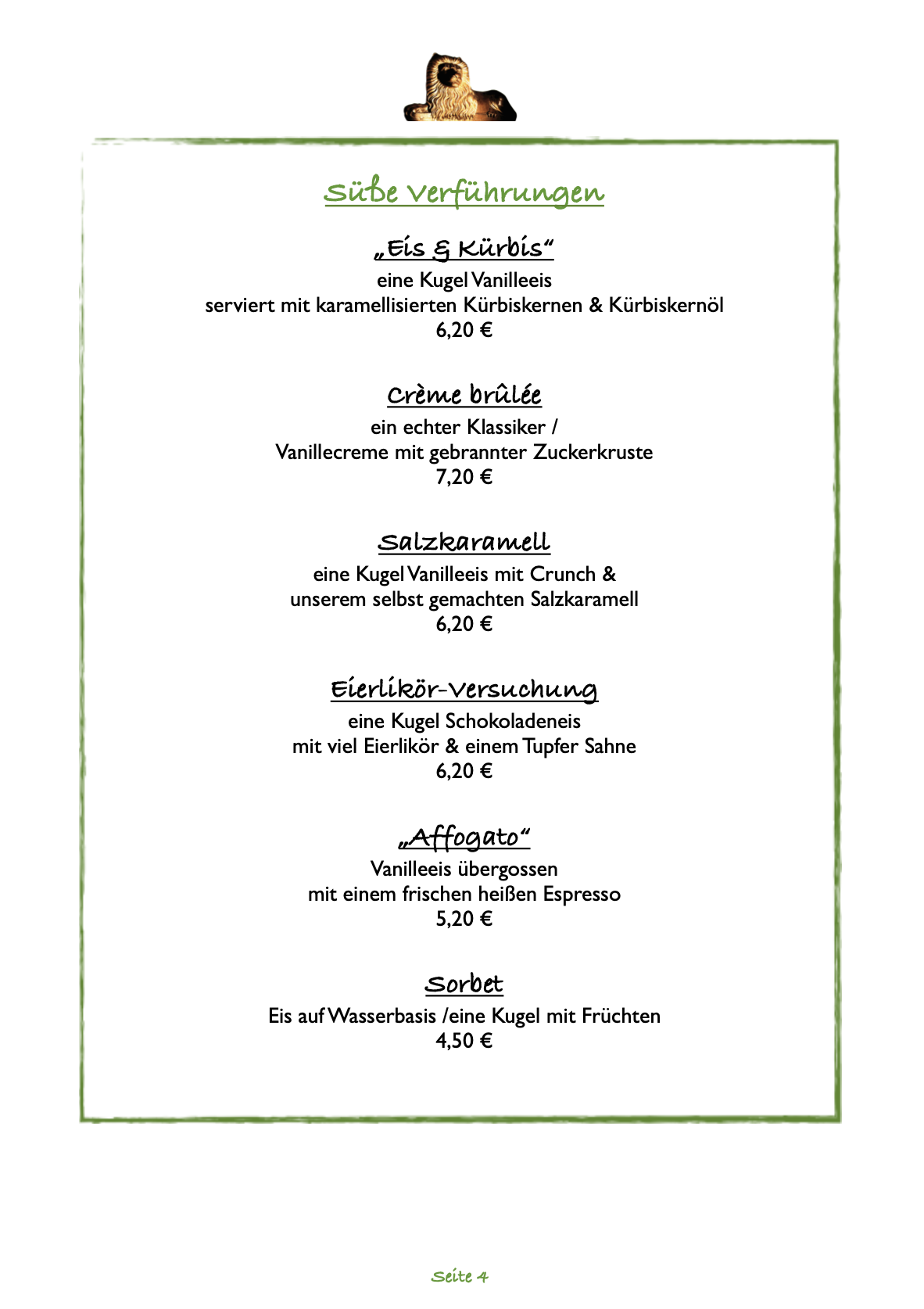 Essen nach Karte (die aktuelle Speisekarte finden Sie immer aktuell auf unserer Webseite)