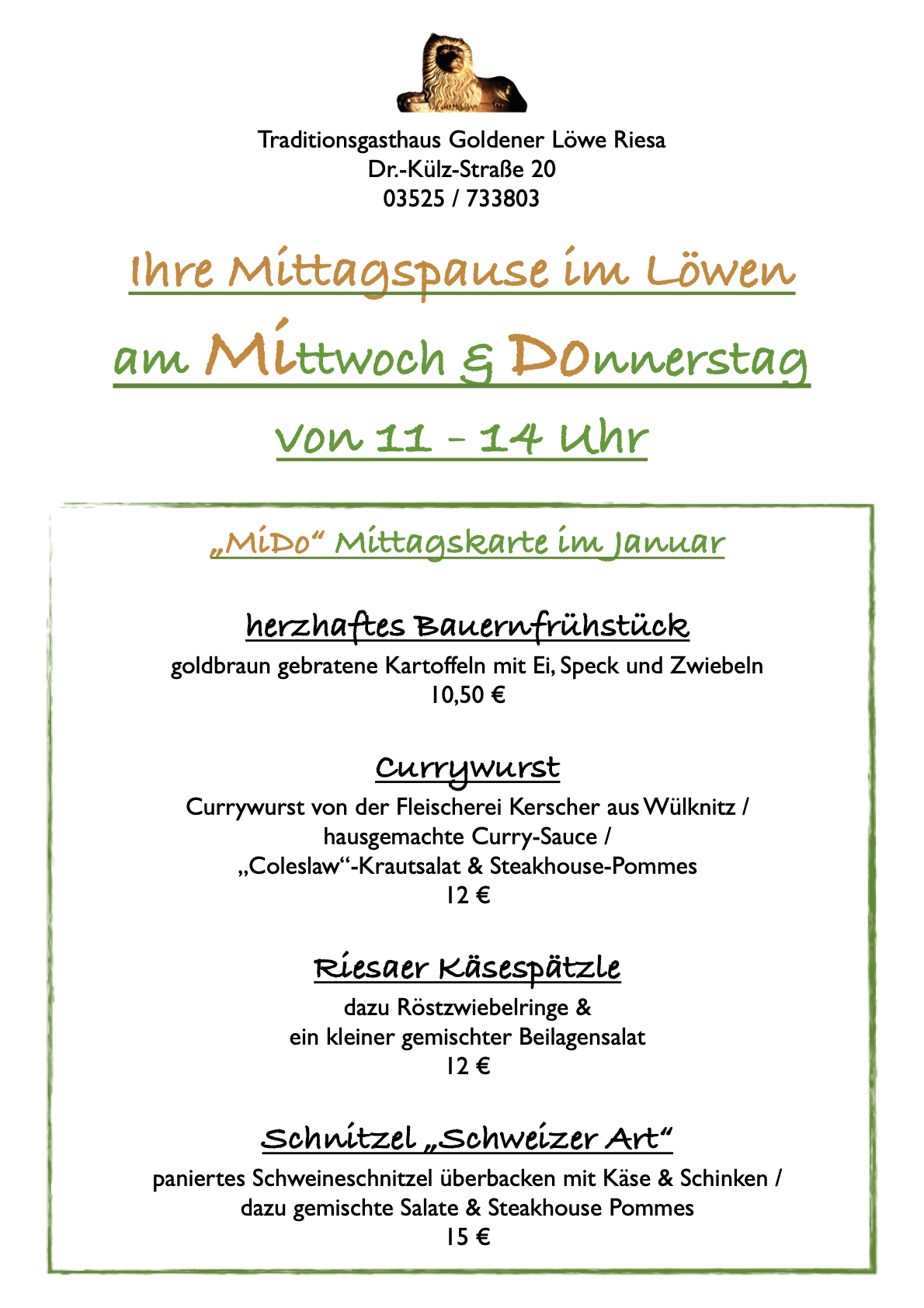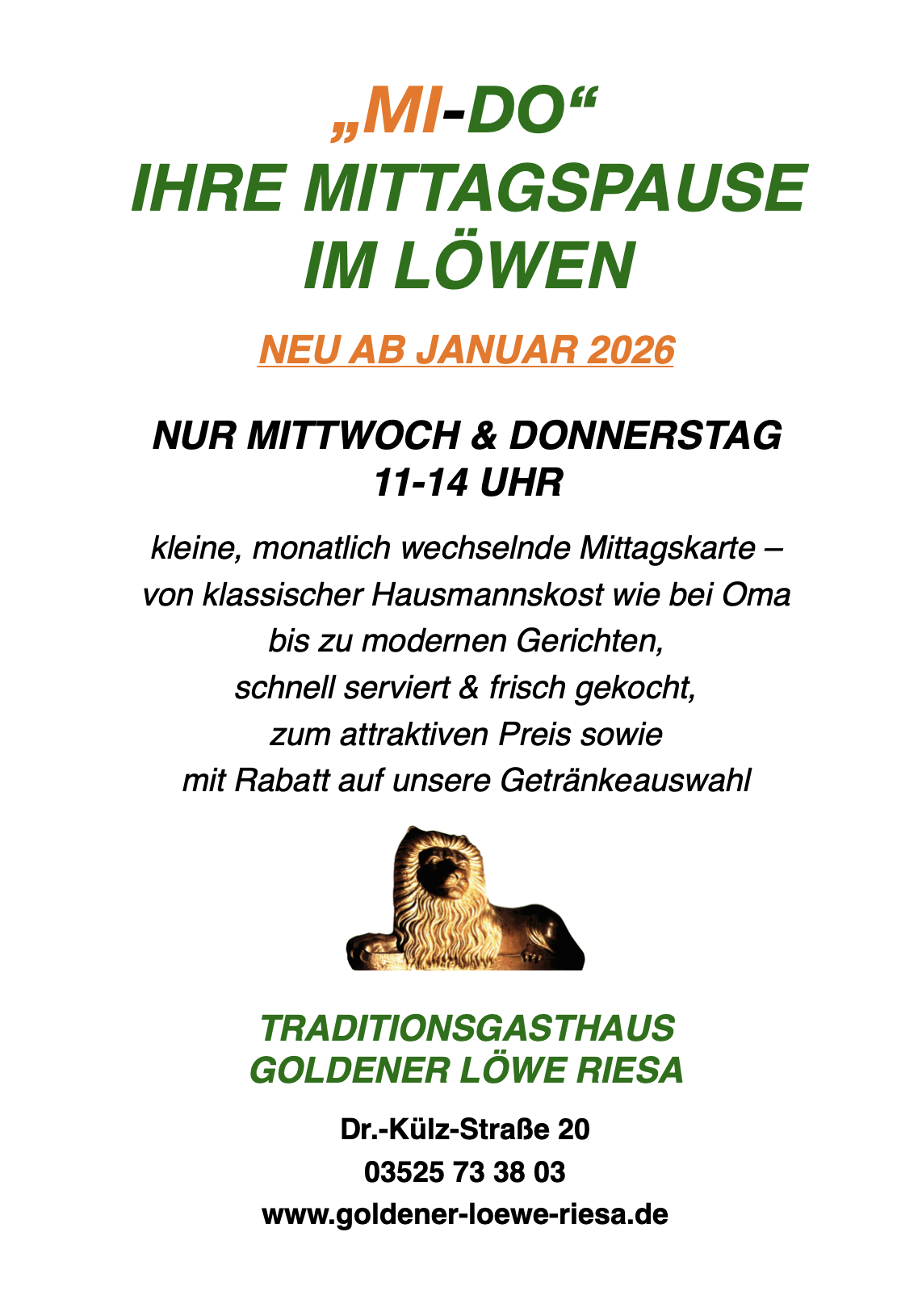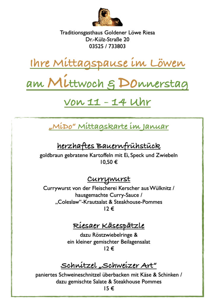 Neu: Ab Januar 2026 auch jeden Mittwoch und Donnerstag mit kleiner Mittagskarte geöffnet.