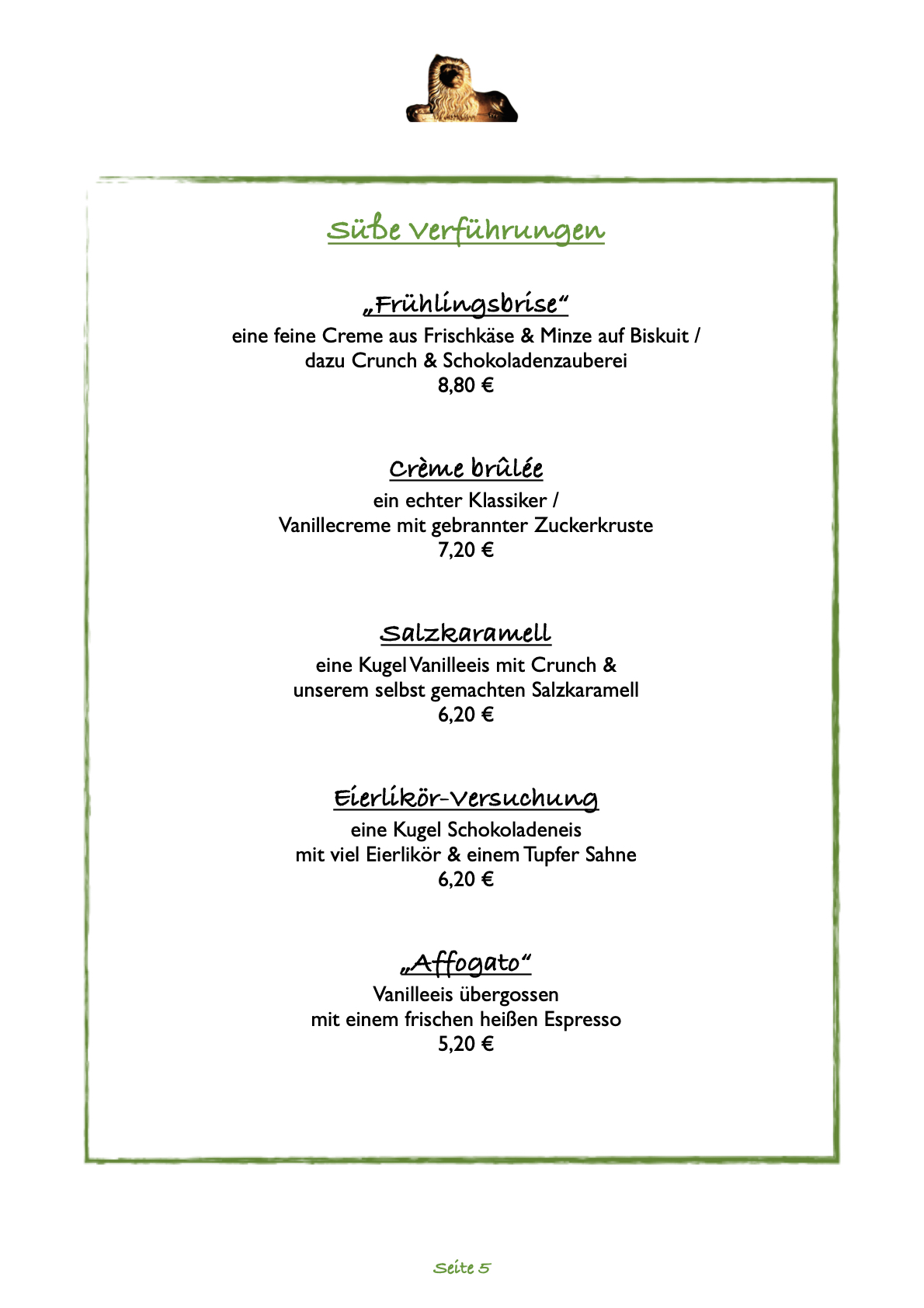 Wir bewirten unsere Gäste mit einer hochwertigen Auswahl aus traditionellen und modernen Speisen, die saisonal wechselt.