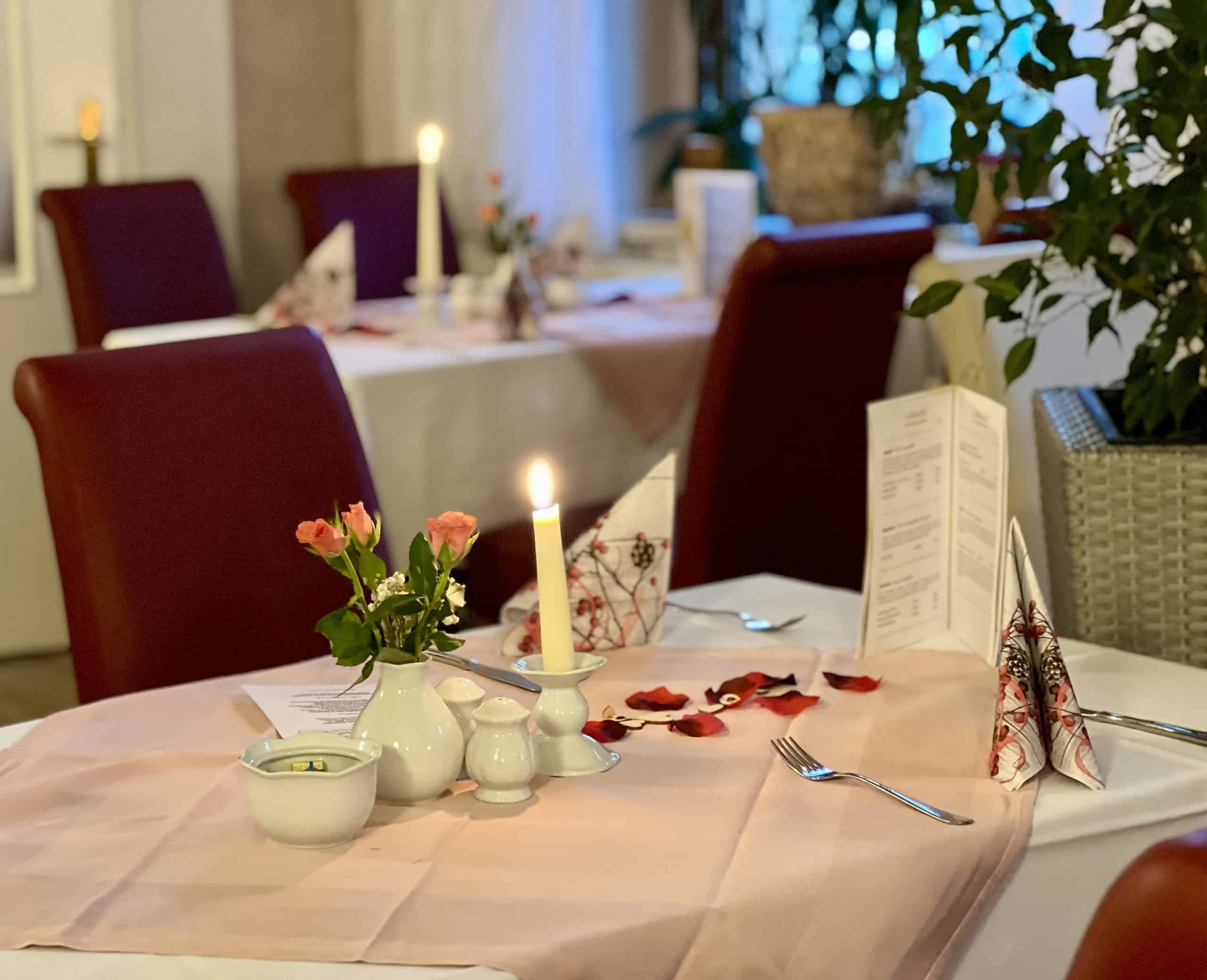 Verbringen Sie einen romantischen Abend bei uns und genießen Sie unser liebevoll zusammengestelltes 3-Gang-Valentinsmenü mit Hauptgang zur Wahl.